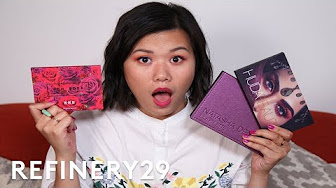 Refinery29 Mi-Anne Chan swatch and test out the 3 popular palettes - Huda Beauty Desert Dusk, Natasha Denona Lila, and ColourPop She Pressed Powder eyeshadow palettes. Watch her create three diffe...